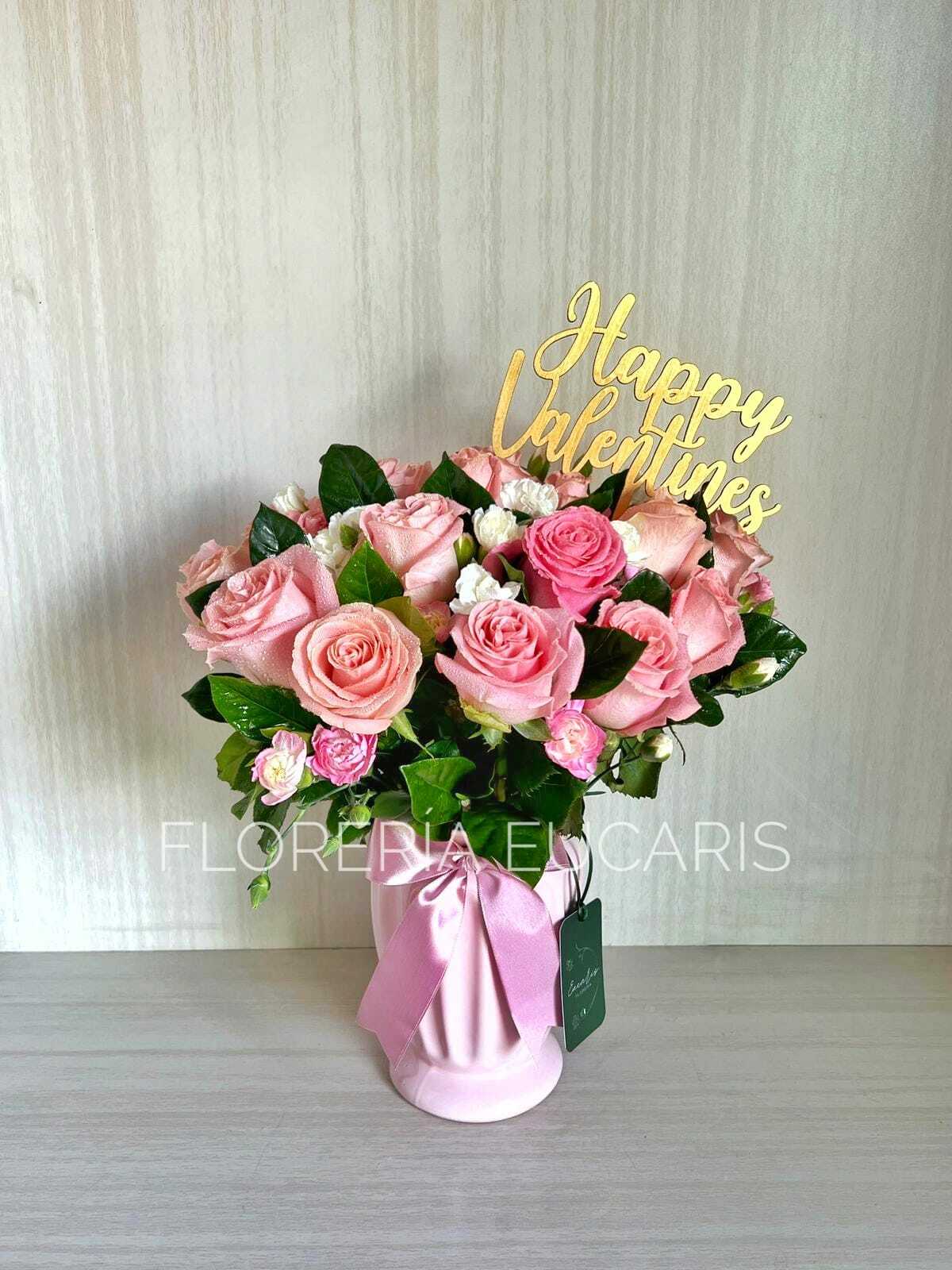 ▸ Precioso florero importado con exclusivas rosas de color rosado