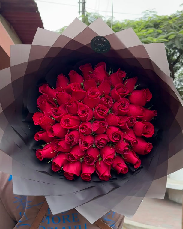 • 50 rosas rojas premium seleccionadas para máxima frescura.