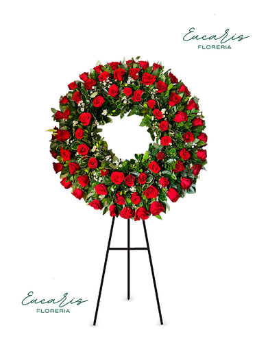 CORONA FUNEBRE ESPECIAL ROSAS ROJAS