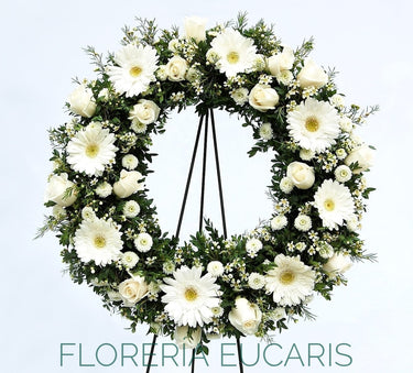 CORONA FUNEBRE ESPECIAL GERBERAS BLANCAS