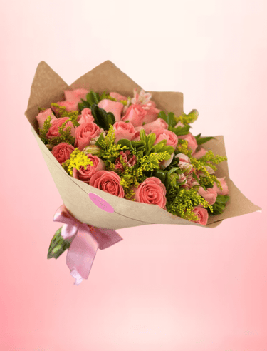 ▸ Ramo de 24 rosas rosadas premium con follajes de temporada