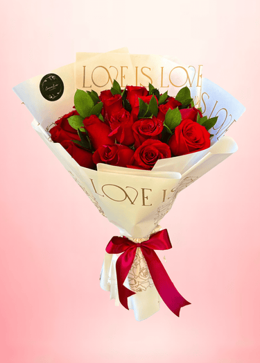 ▸ Hermosa ramo con 24 rosas rojas premium, acompañada de finos follajes de temporada y envuelto con papel importado.